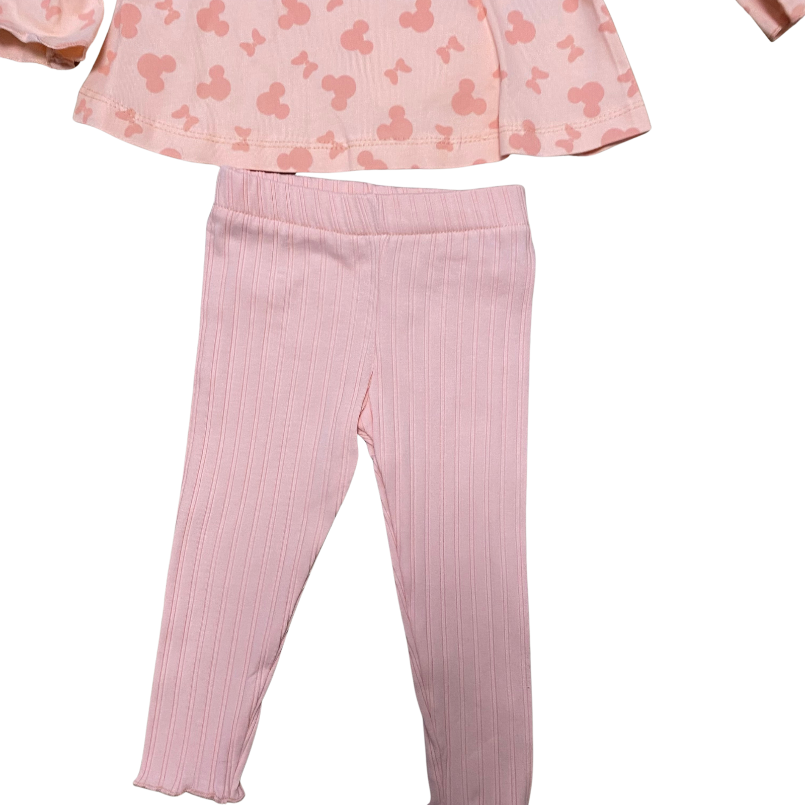 Compleu fetiță roz cu fundiță și colanți asortați – moale, comod și adorabil, ideal pentru zilele de primăvară și toamnă.