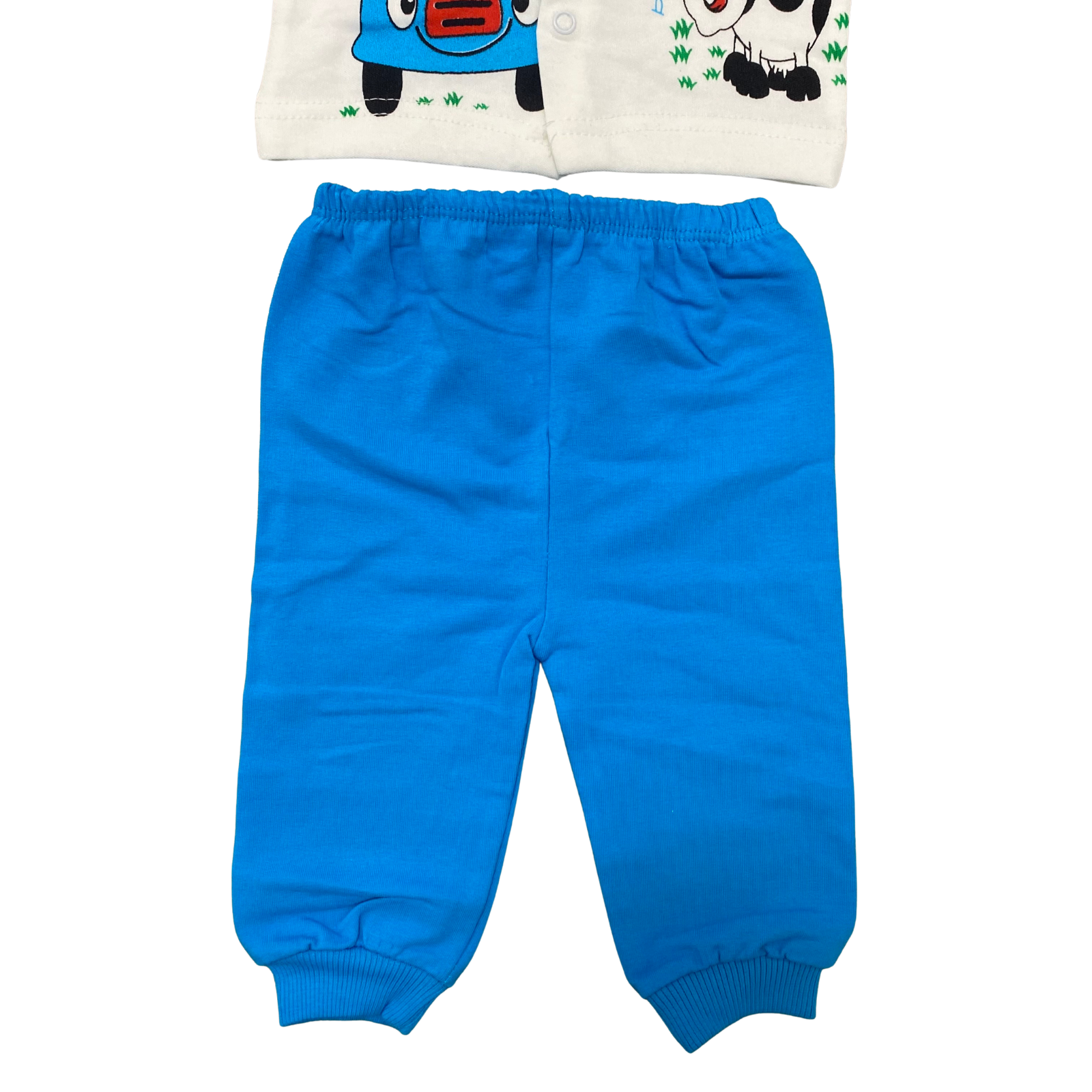 🚗🐮 Set bebeluși, 2 piese – bluză albă cu imprimeu girafă și vacuță + pantaloni albaștri 🦒💙