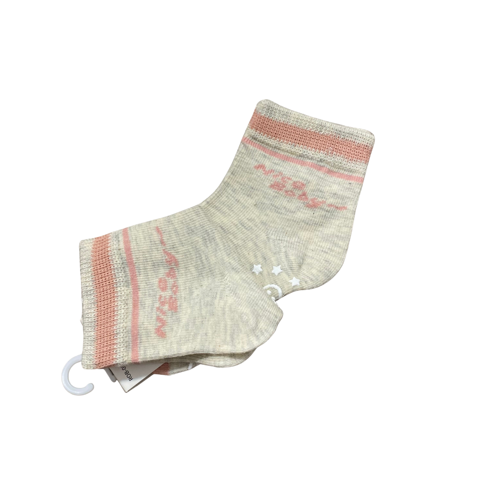 Set 2 perechi șosetuțe bebeluș antiderapante din bumbac – crem cu detalii roz, moi și confortabile