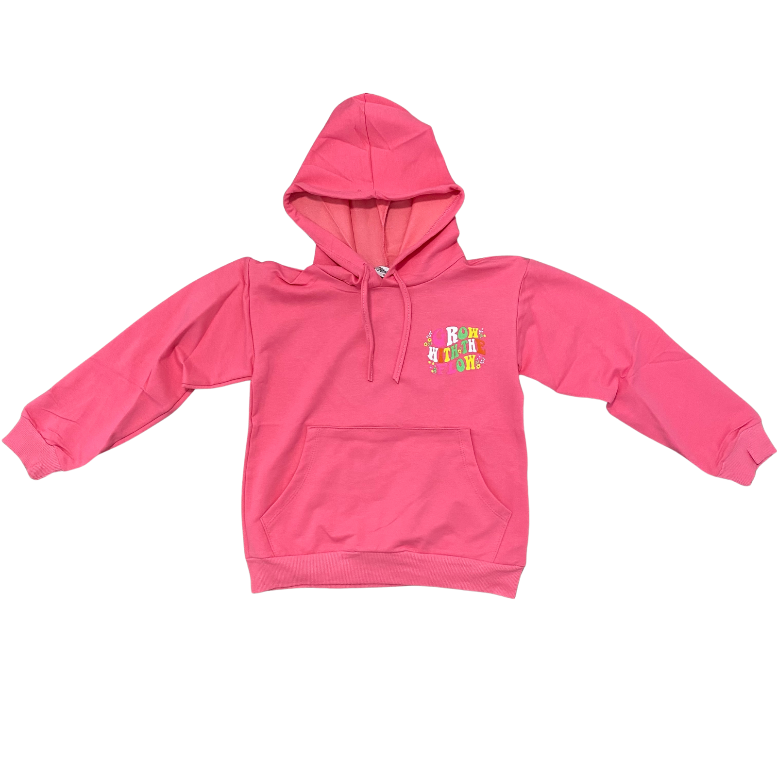 🌸 Hanorac roz cu glugă pentru copii – „Grow with the Flow” 🌈