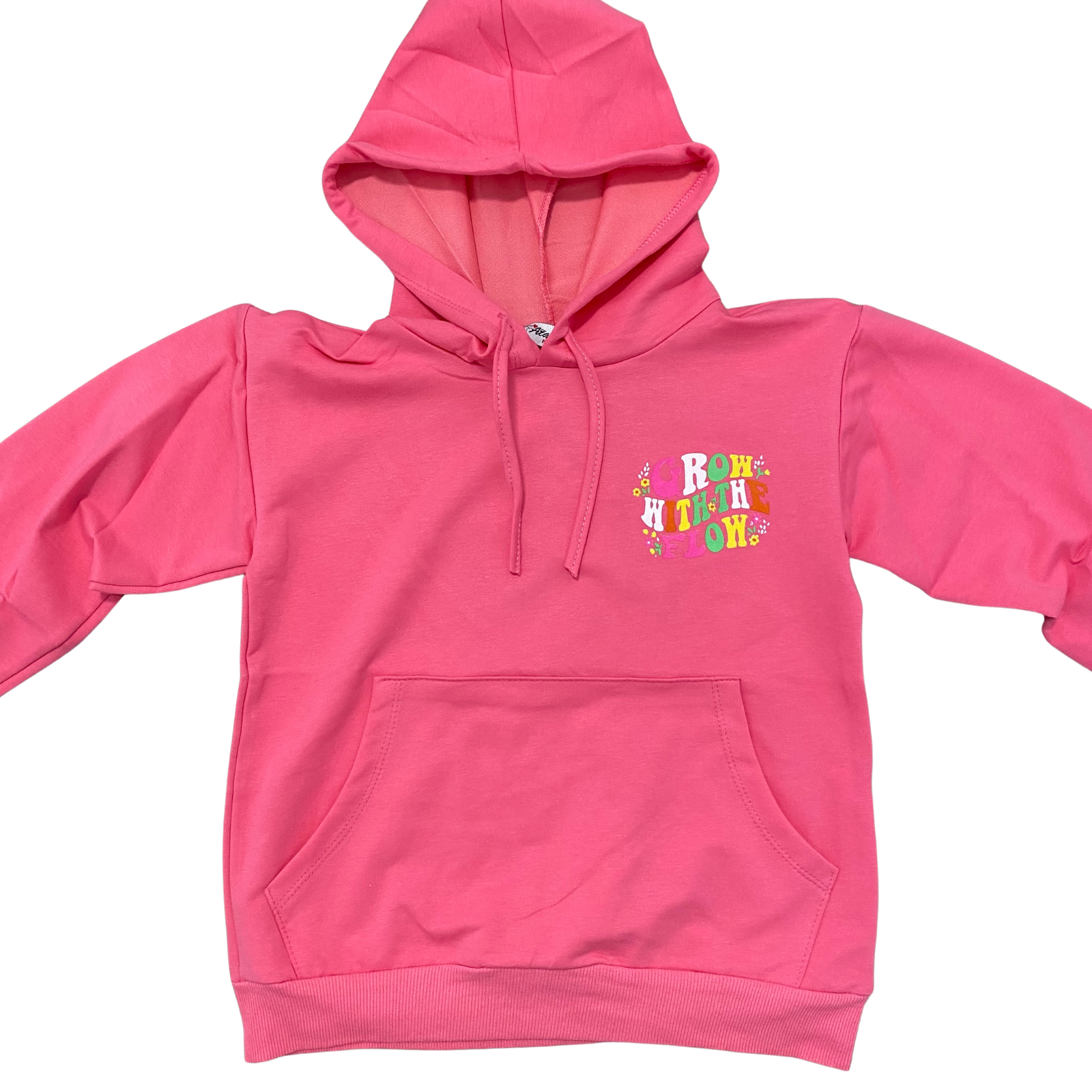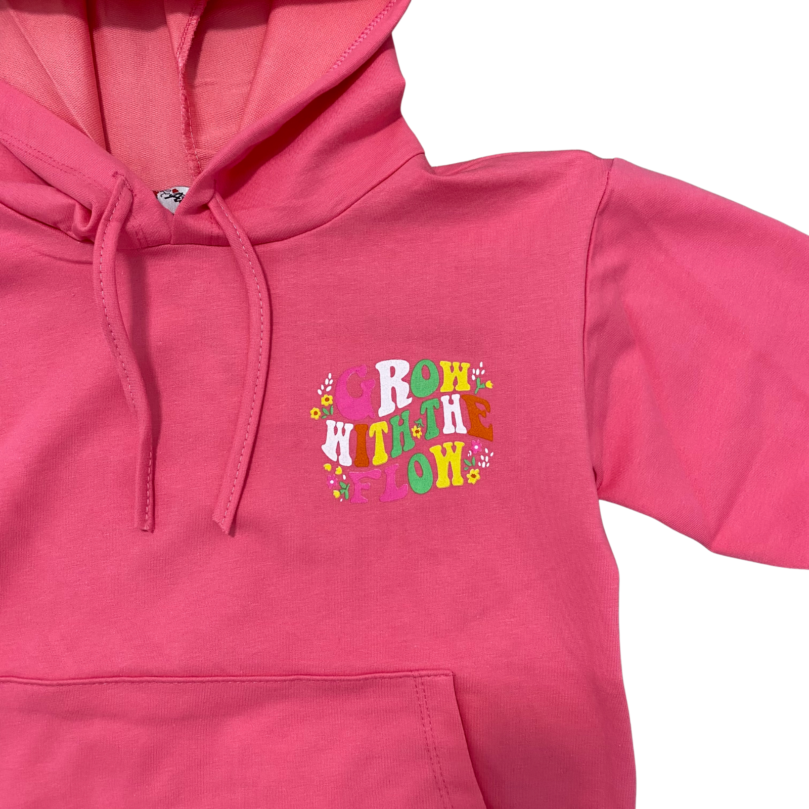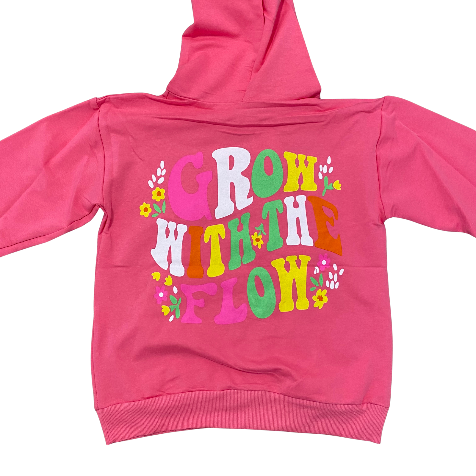 Hanorac roz cu glugă pentru copii – imprimeu „Grow with the Flow”