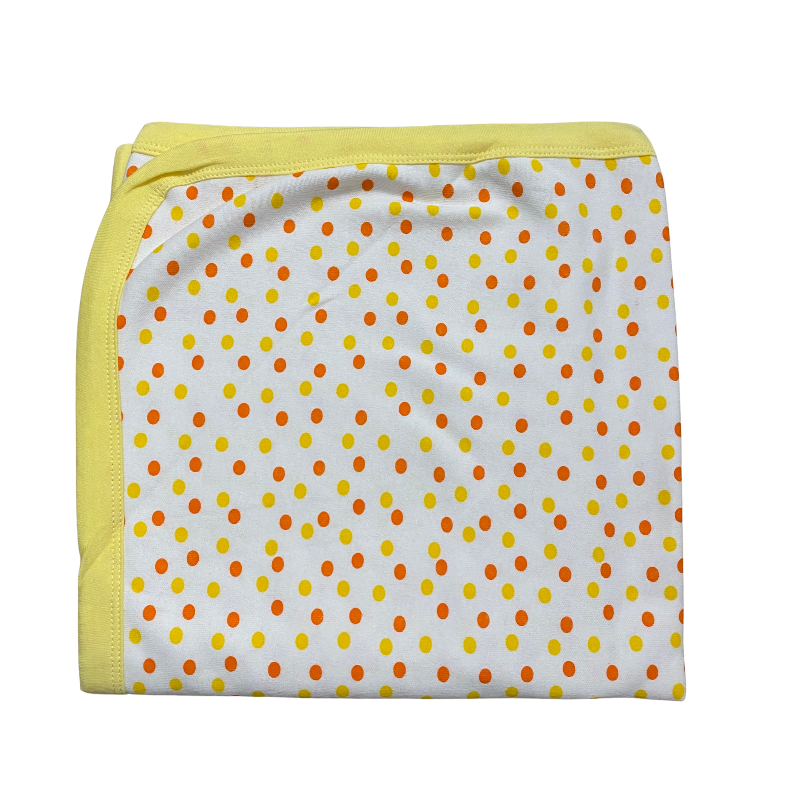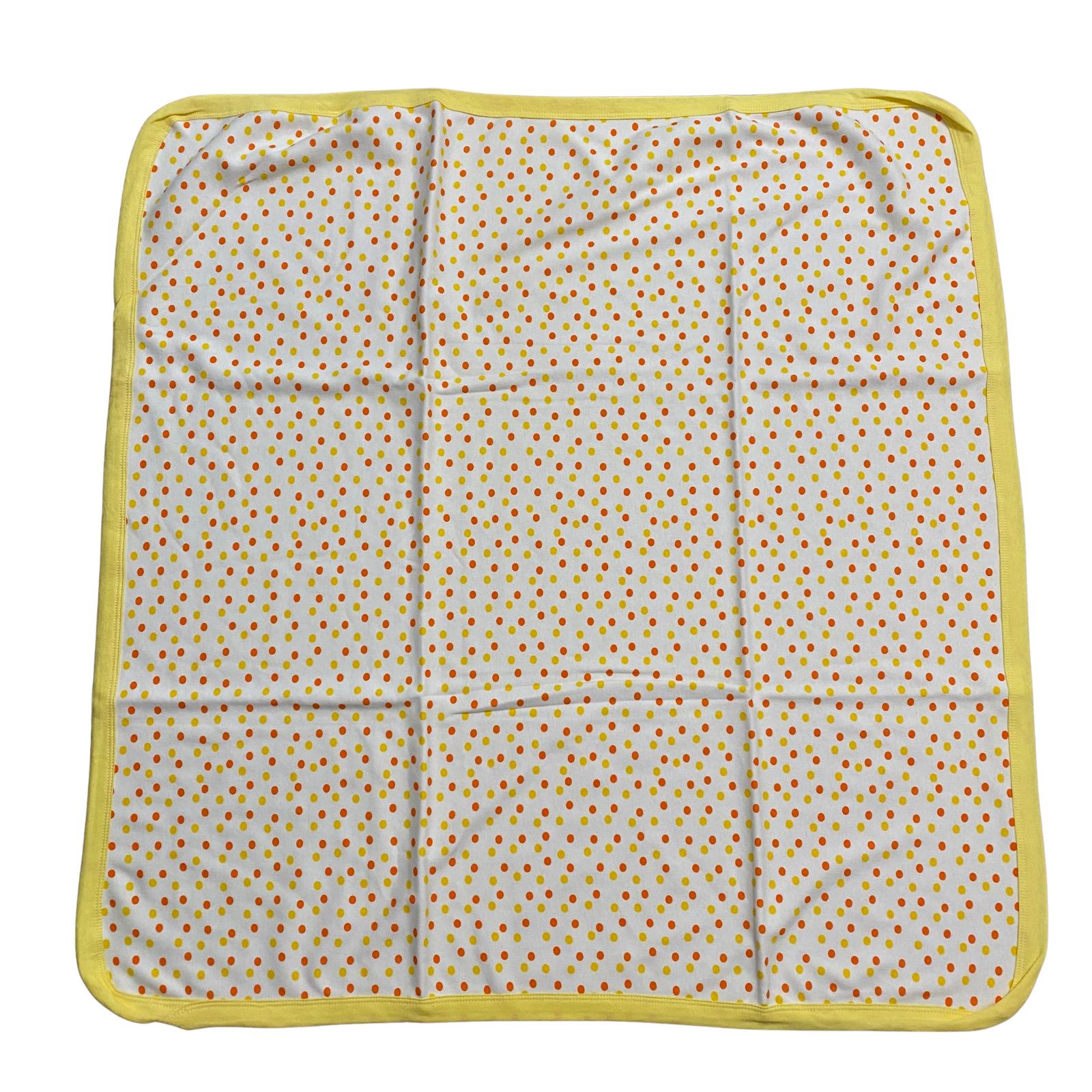 Păturica subțire pentru bebeluși este confecționată din 100% bumbac moale, ideală pentru utilizare zilnică datorită texturii fine și respirabile. Modelul este prevăzut cu margini contrastante și imprimeuri colorate (buline, floricele), aducând un plus de veselie și delicatețe fiecărui moment al zilei.