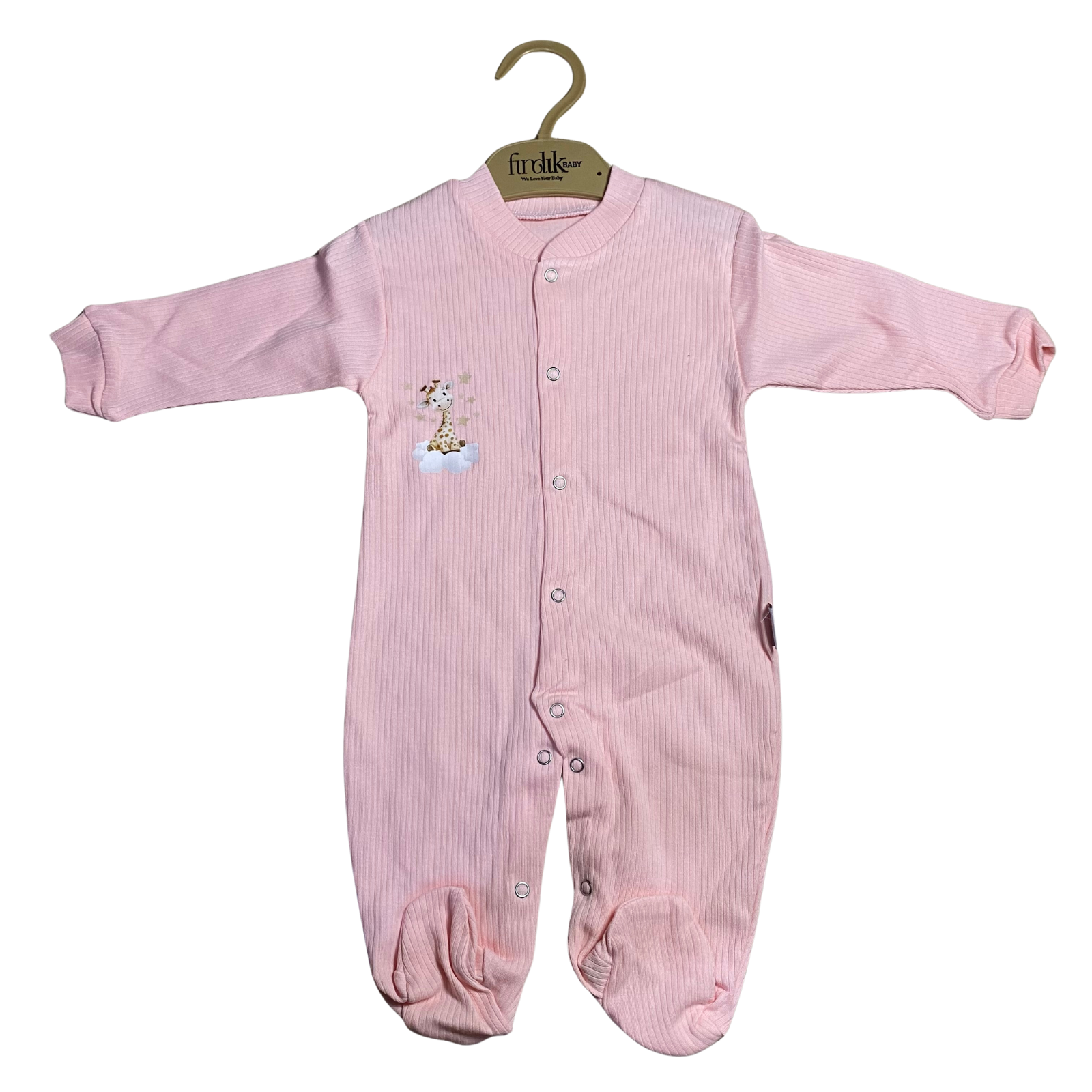 Salopeta roz reiată cu aplicație girafă este perfectă pentru bebelușii care au nevoie de confort și căldură în fiecare zi.