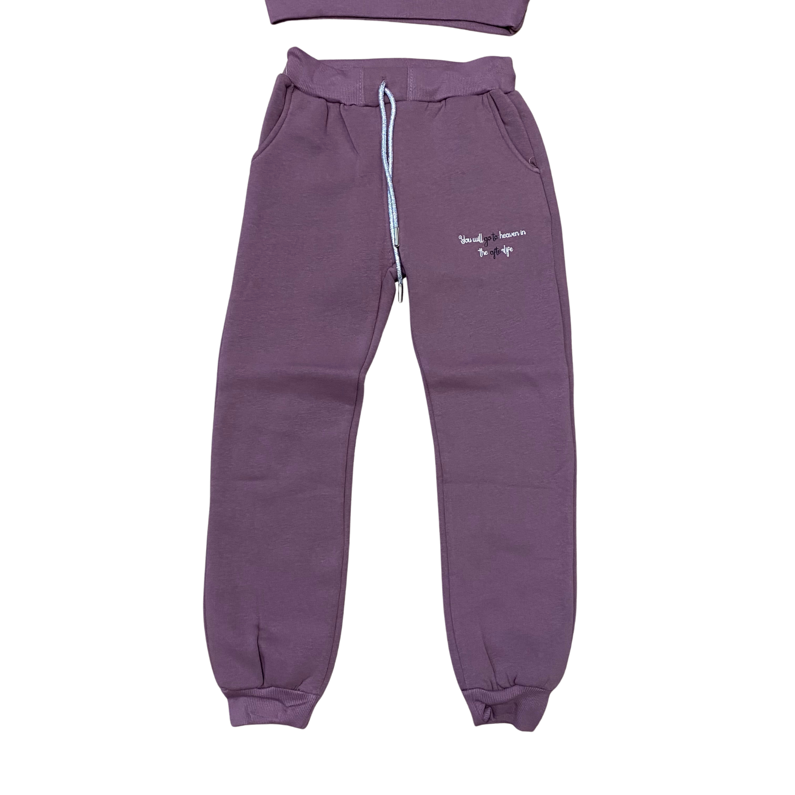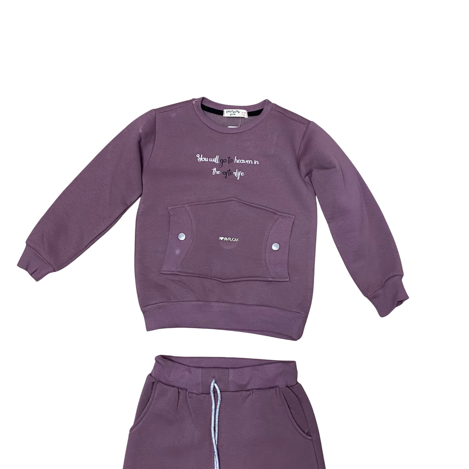 Set confortabil format din bluză cu mânecă lungă și pantaloni cu elastic în talie, realizat din material moale și plăcut la atingere. Bluza are un buzunar frontal cu nasturi decorativi și un imprimeu minimalist care adaugă o notă modernă. Pantalonii sunt prevăzuți cu șnur reglabil și manșete elastice pentru o potrivire perfectă. Setul oferă libertate de mișcare și confort pe tot parcursul zilei, fiind potrivit pentru activități zilnice, joacă sau relaxare.